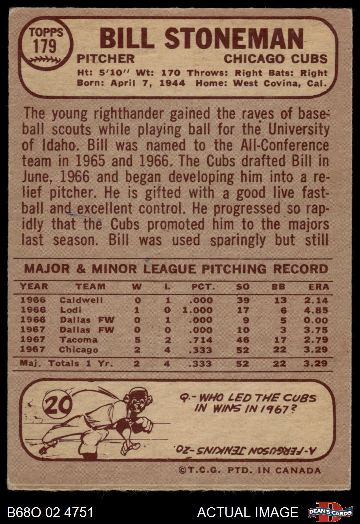 1968 O-Pee-Chee #179 Bill Stoneman 4 - VG/EX