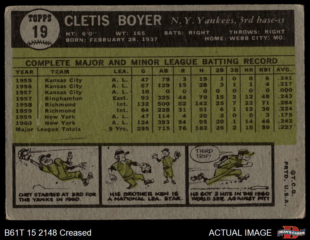 1961 Topps #19 Clete Boyer 2.5 - GD+