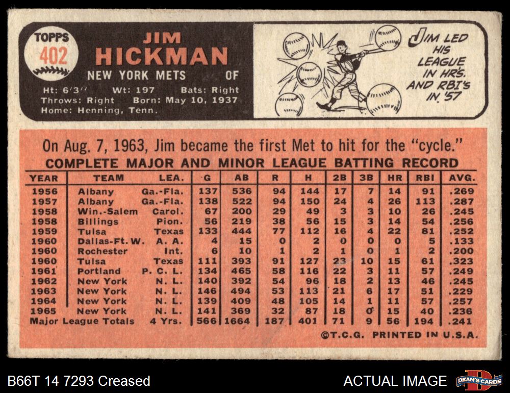 1966 Topps #402 Jim Hickman 2 - GOOD