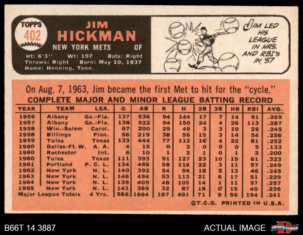 1966 Topps #402 Jim Hickman 5.5 - EX+