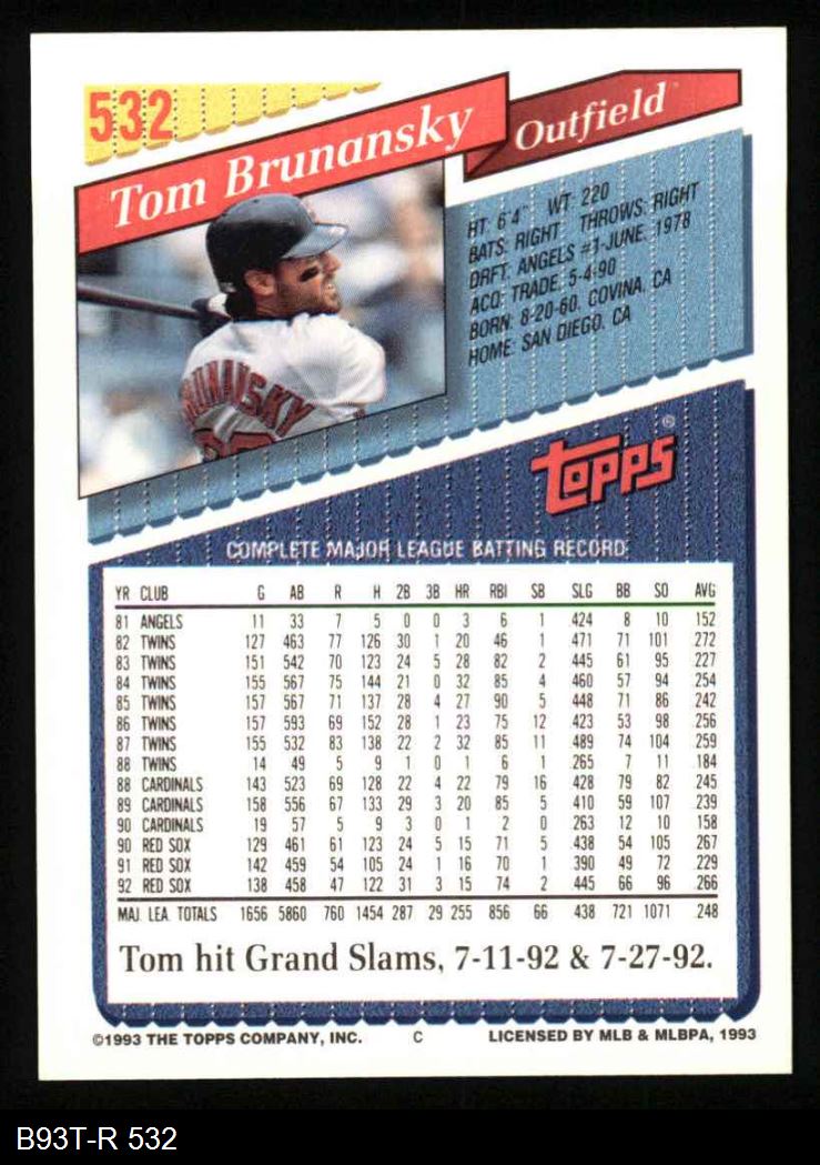 1993 Topps #532 Tom Brunansky