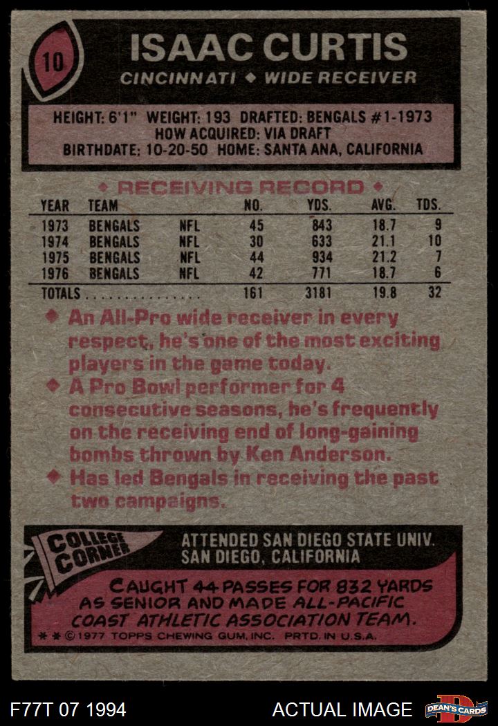 1977 Topps #10 Isaac Curtis