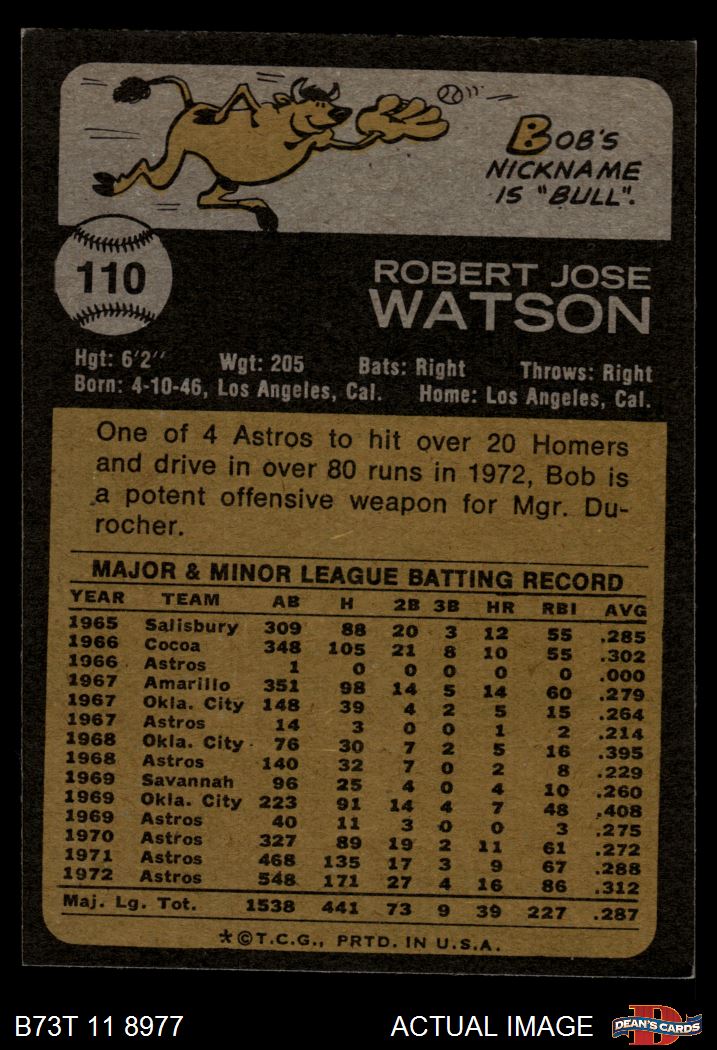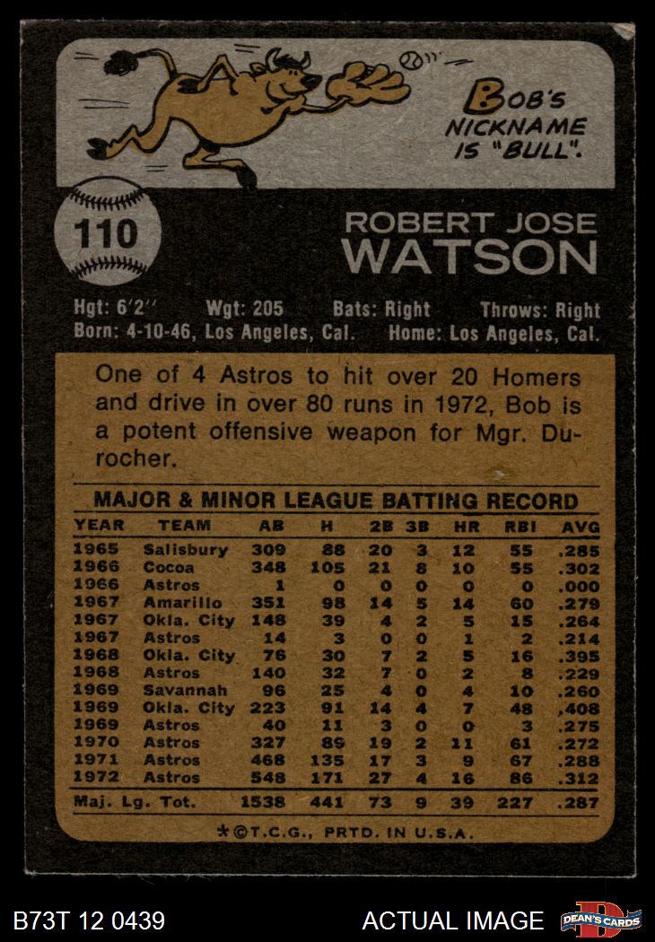 1973 Topps #110 Bob Watson 4 - VG/EX