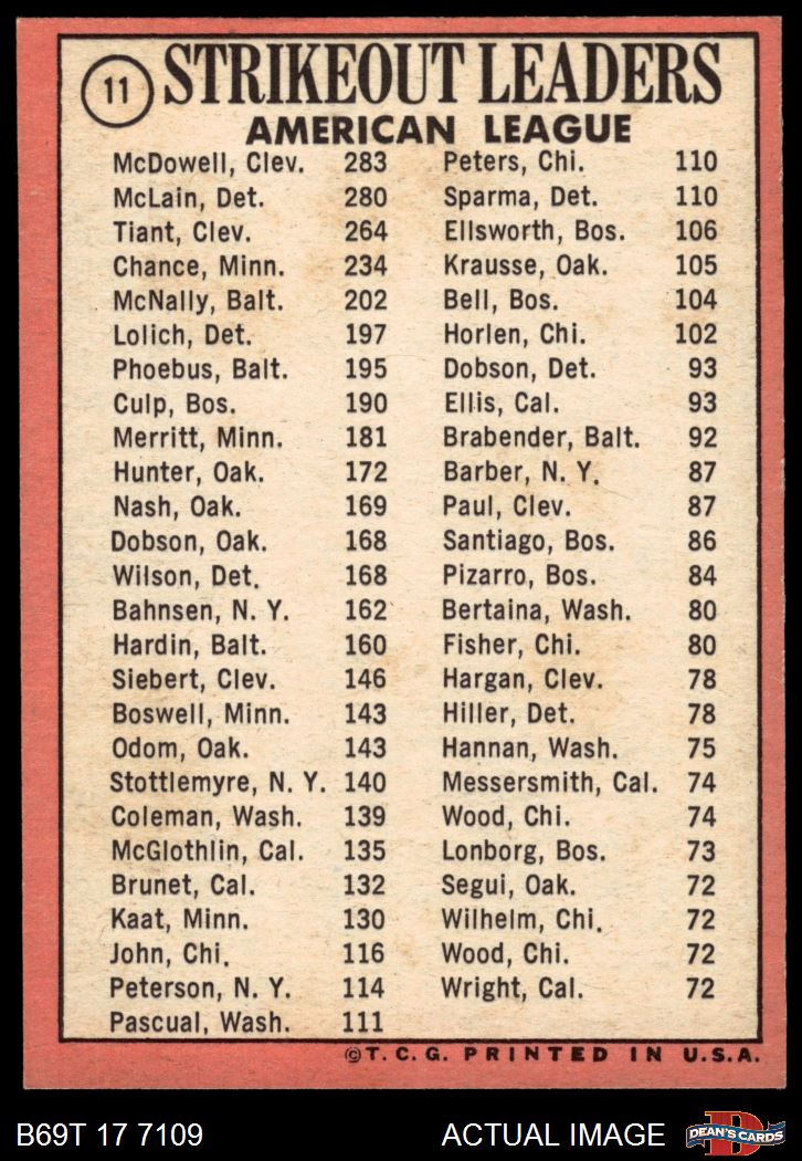 1969 Topps #11 AL Strikeout Leaders