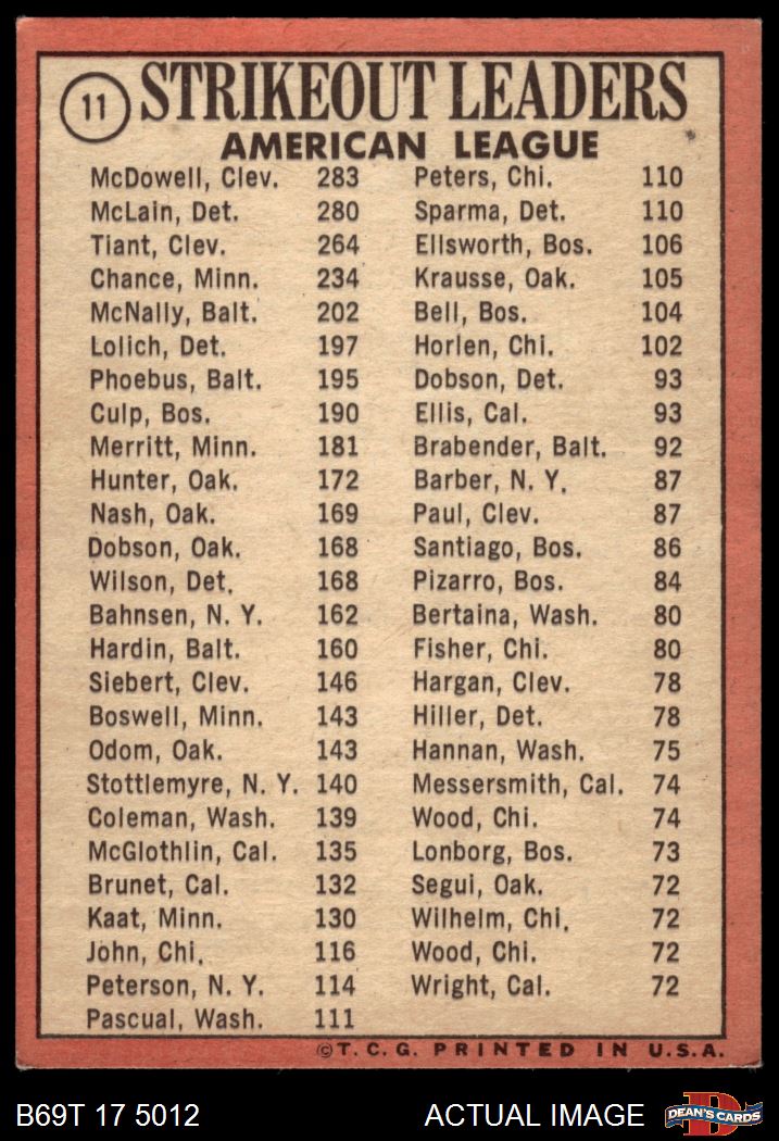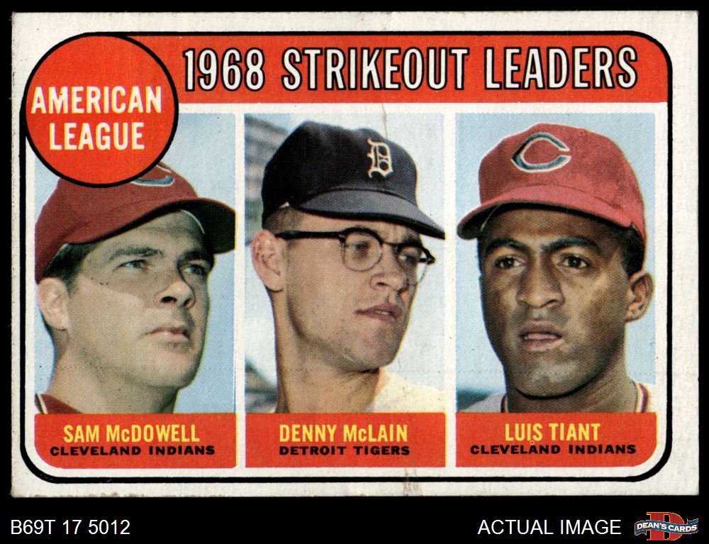 1969 Topps #11 - Sam McDowell / Denny McLain / Luis Tiant AL Strikeout Leaders 4 - VG/EX