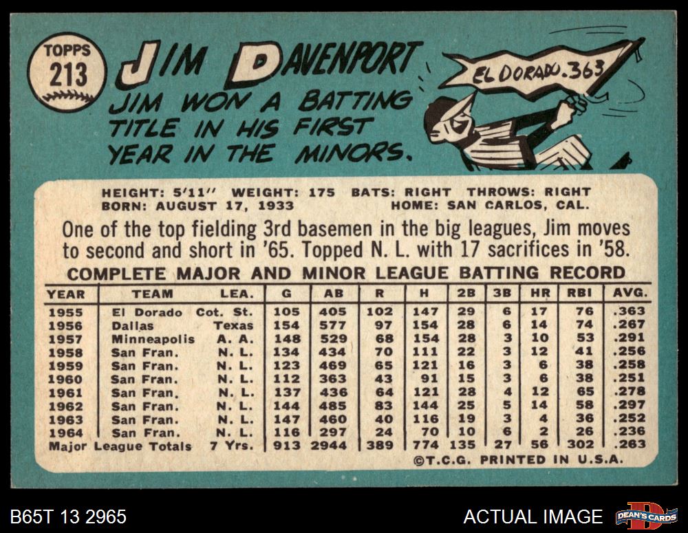 1965 Topps #213 Jim Davenport 5.5 - EX+