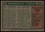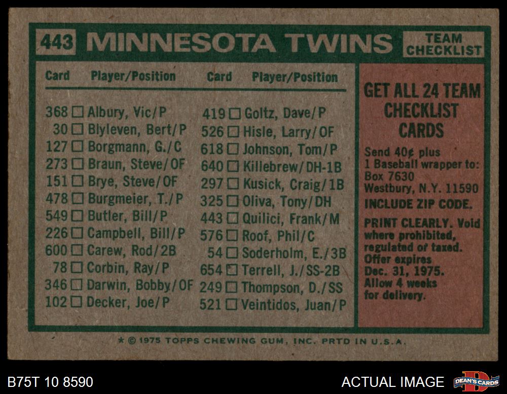 1975 Topps #443 - Frank Quilici Twins Team Checklist 4 - VG/EX