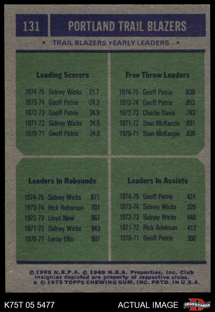 1975 Topps #131 - Geoff Petrie / Sidney Wicks Trail Blazers Leaders 5 - EX