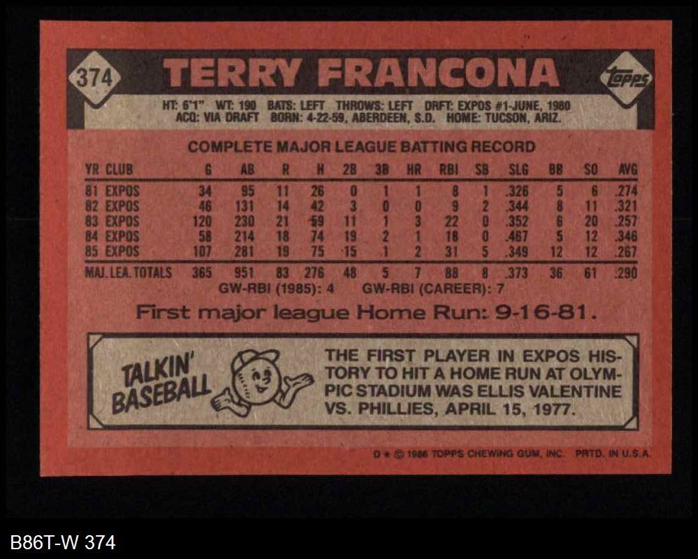 1986 Topps Baseball Cards (5,426 available)1986 Topps Expos (301 available)