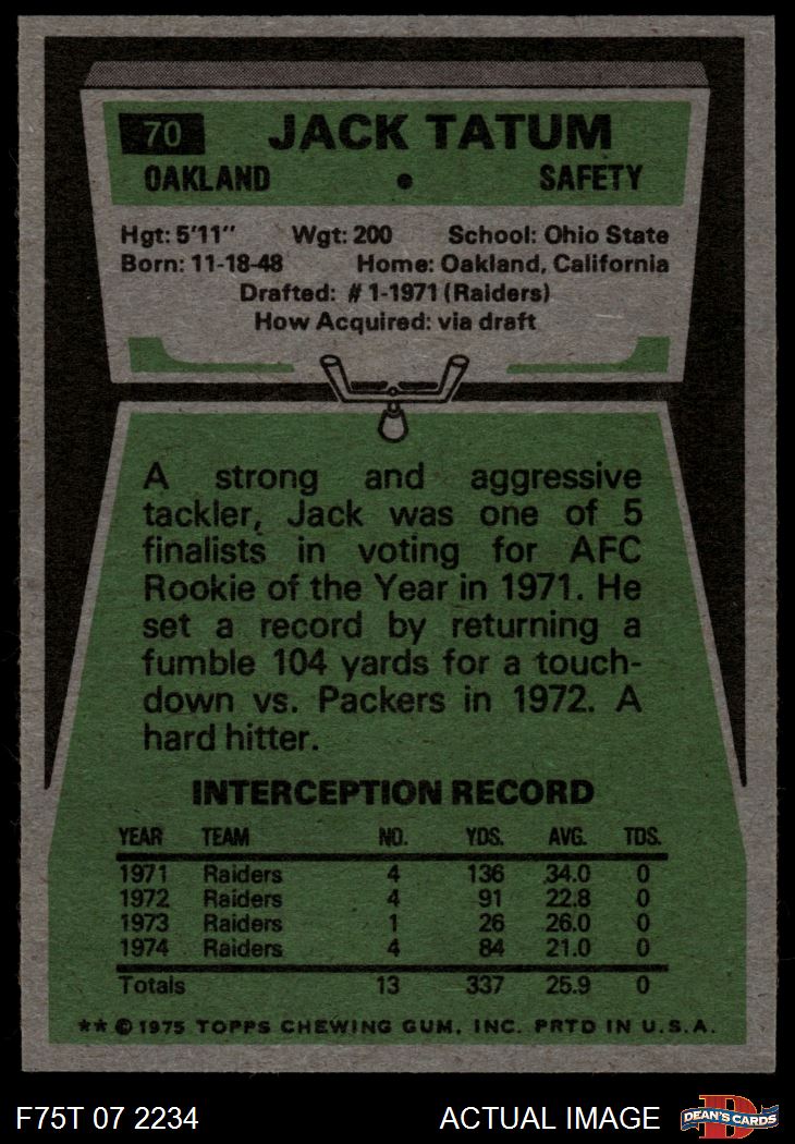 1975 Topps #70 Jack Tatum 7 - NM