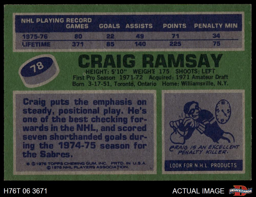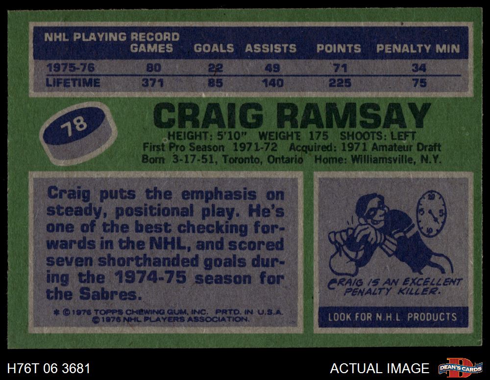1976 Topps #78 Craig Ramsay