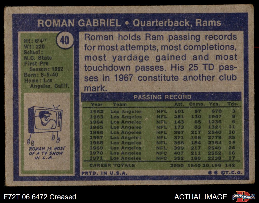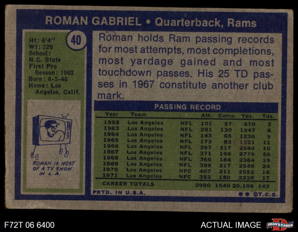 1972 Topps #40 Roman Gabriel 1 - POOR