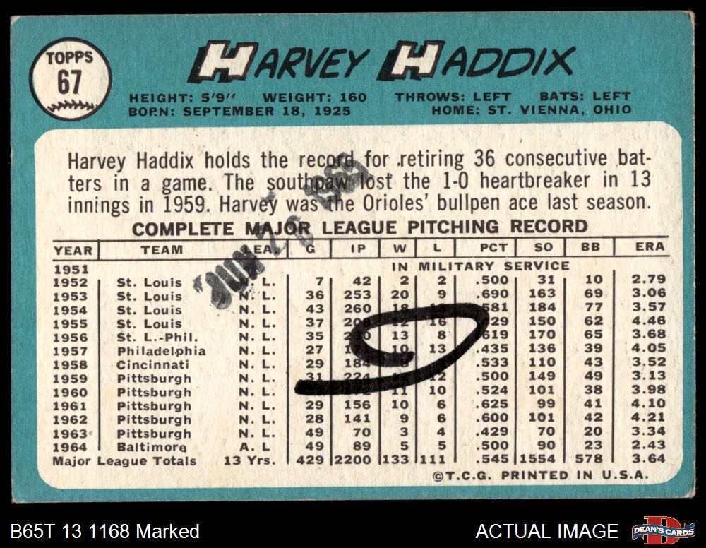 1965 Topps #67 Harvey Haddix 1.5 - FAIR