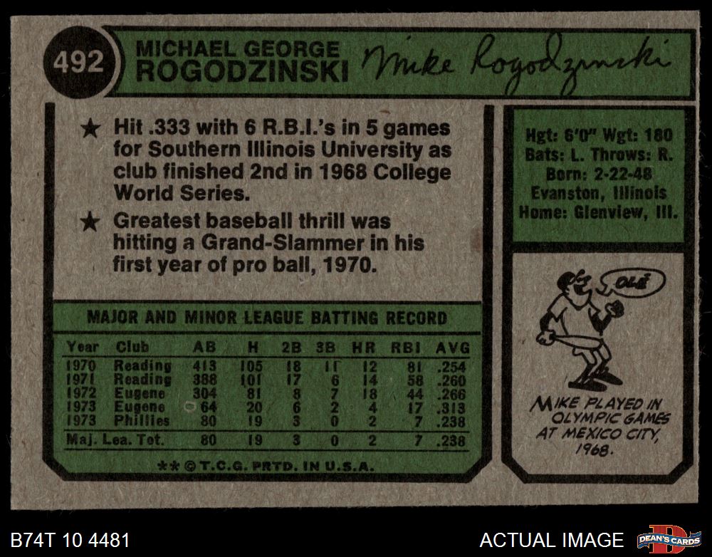 1974 Topps #492 Mike Rogodzinski 4 - VG/EX