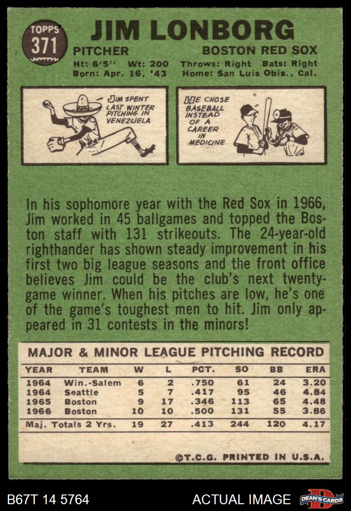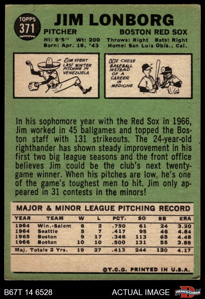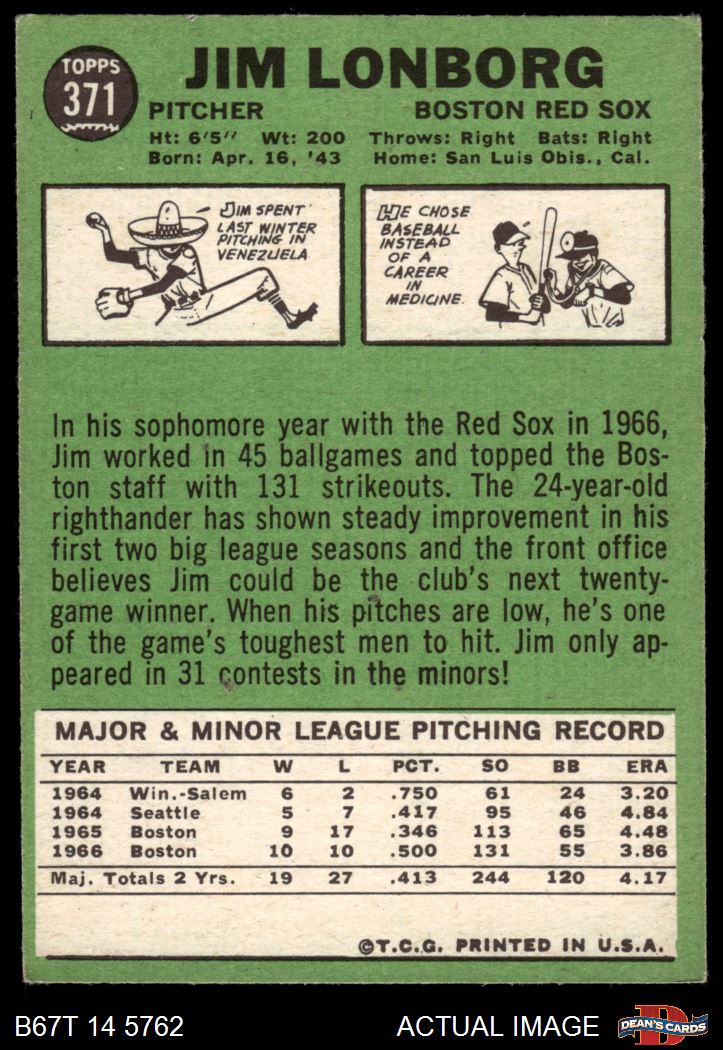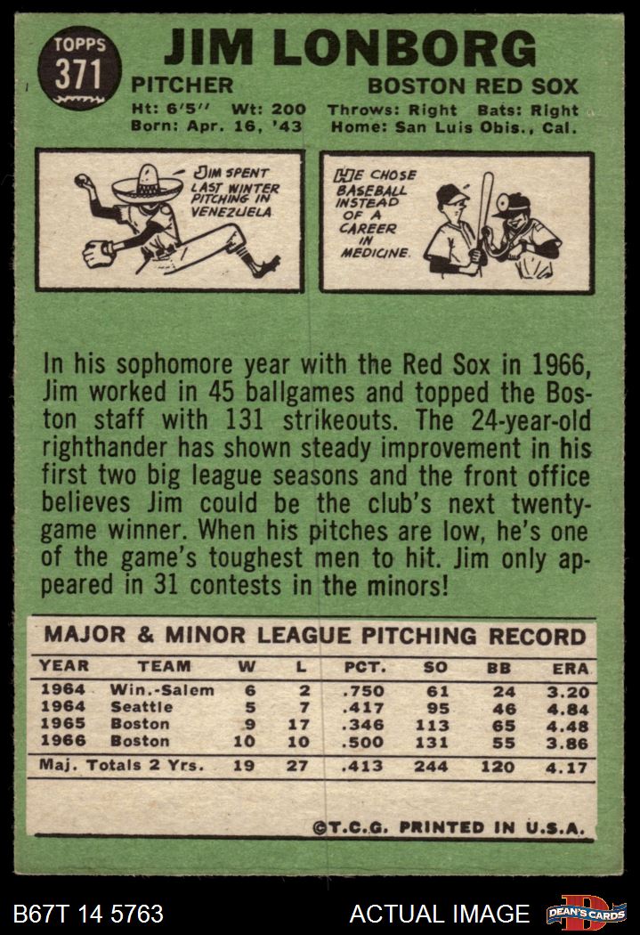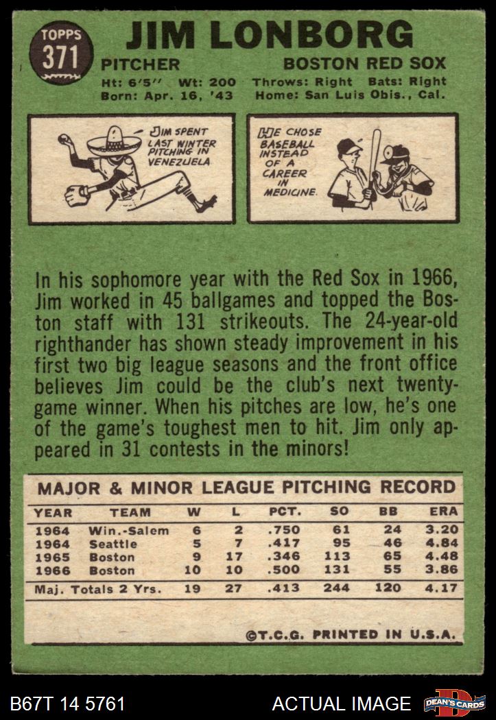 1967 Topps #371 Jim Lonborg