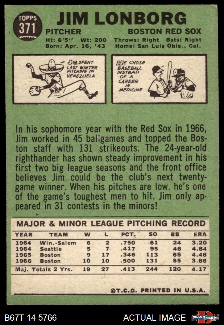 1967 Topps #371 Jim Lonborg 5.5 - EX+