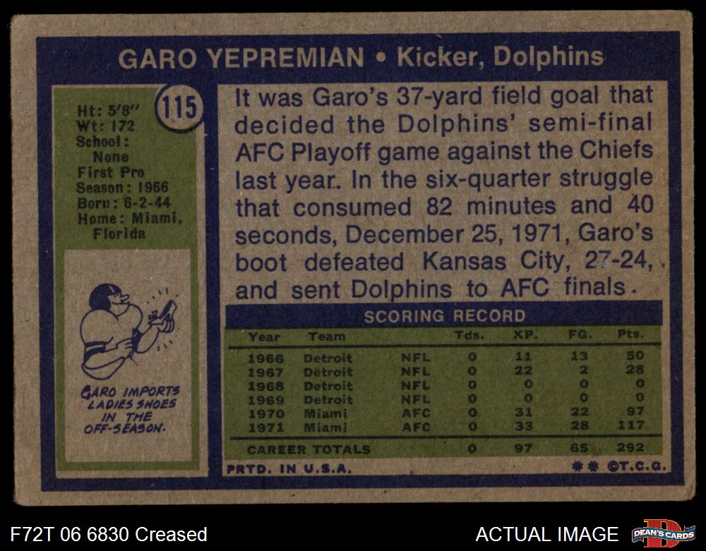 1972 Topps #115 Garo Yepremian 1 - POOR