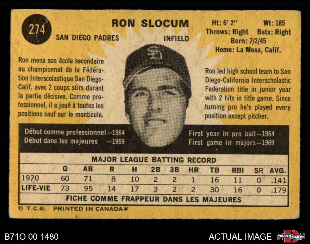 1971 O-Pee-Chee #274 Ron Slocum