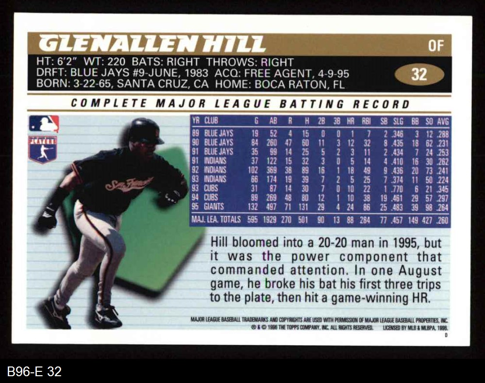 1996 Topps #32 Glenallen Hill 8 - NM/MT