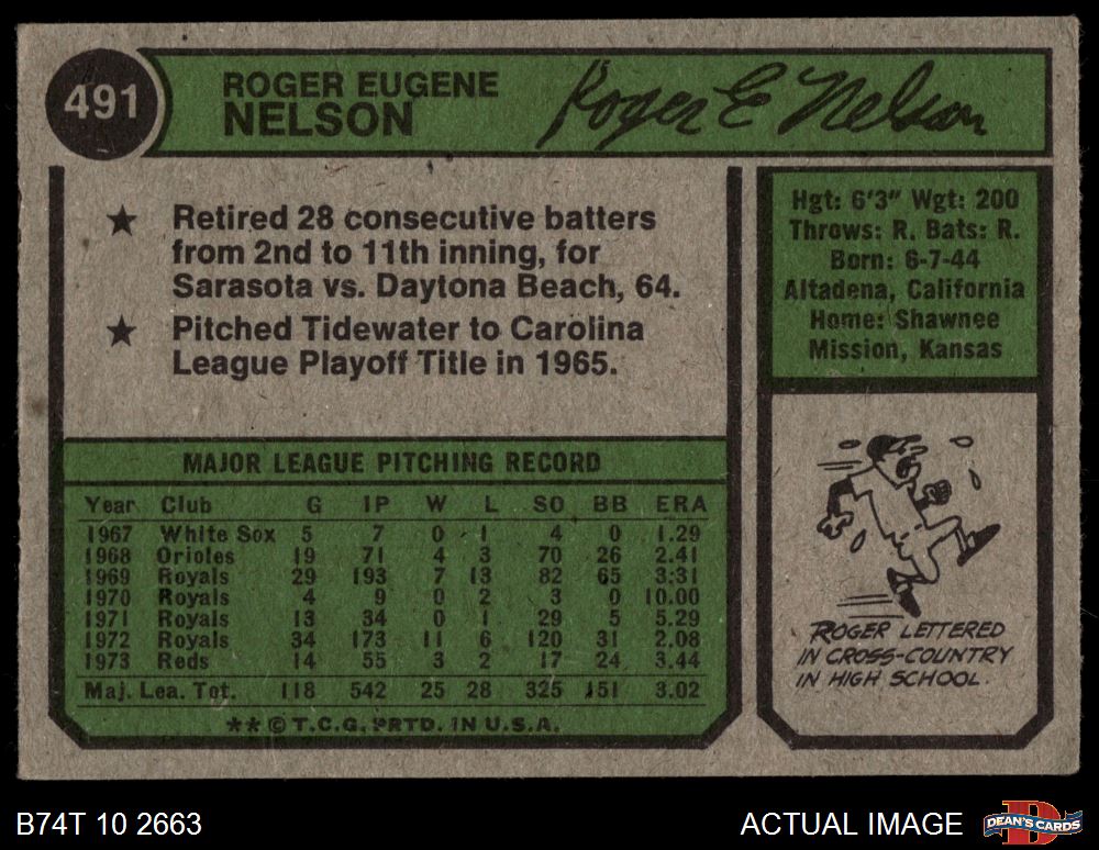 1974 Topps #491 Roger Nelson 3.5 - VG+