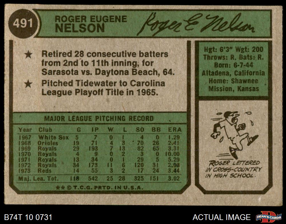 1974 Topps #491 Roger Nelson 4 - VG/EX