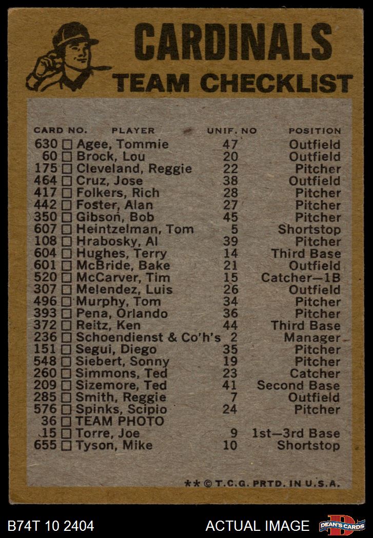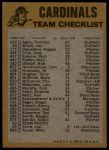1974 Topps St. Louis Cardinals Red Team Checklist 4.5 - VG/EX+