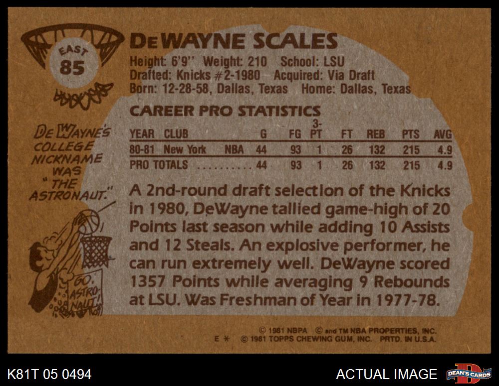 1981 Topps #85 E DeWayne Scales 8 - NM/MT
