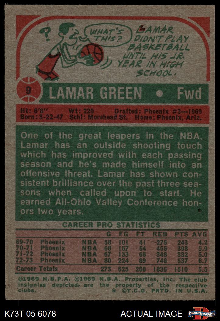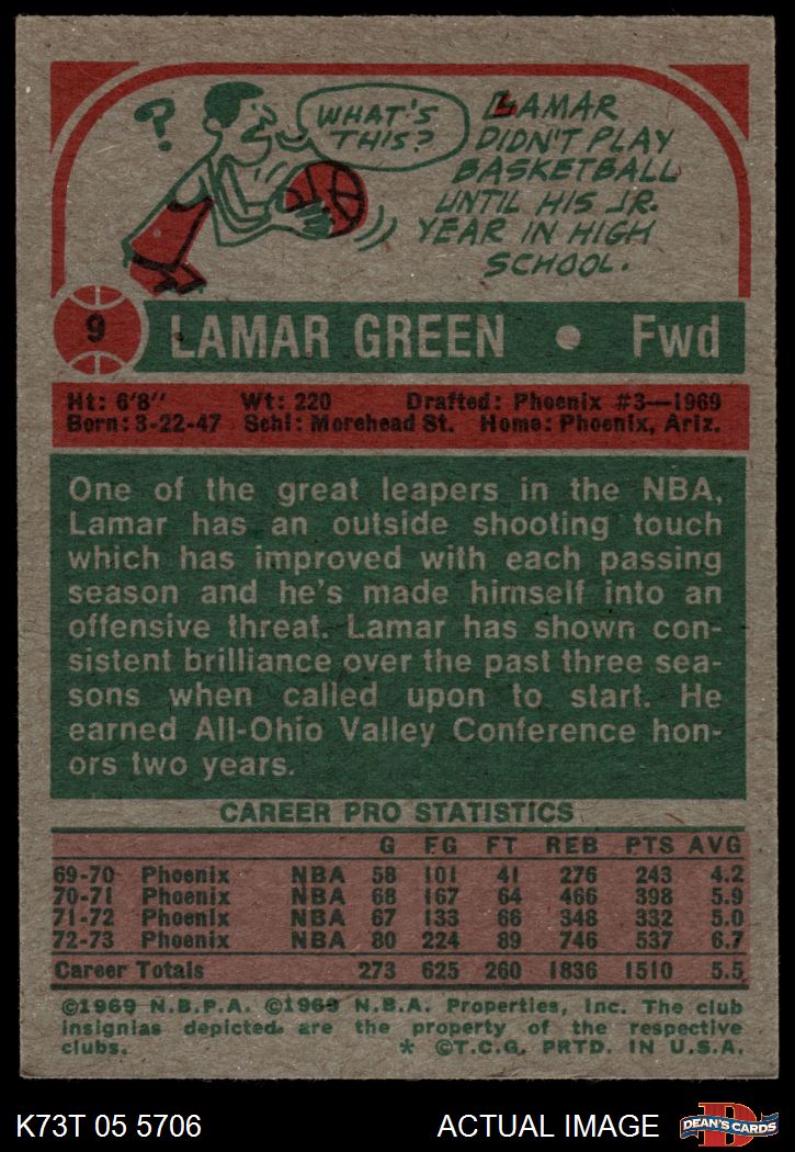 1973 Topps #9 Lamar Green 5 - EX