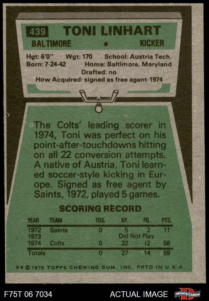 1975 Topps #439 Toni Linhart 6 - EX/MT