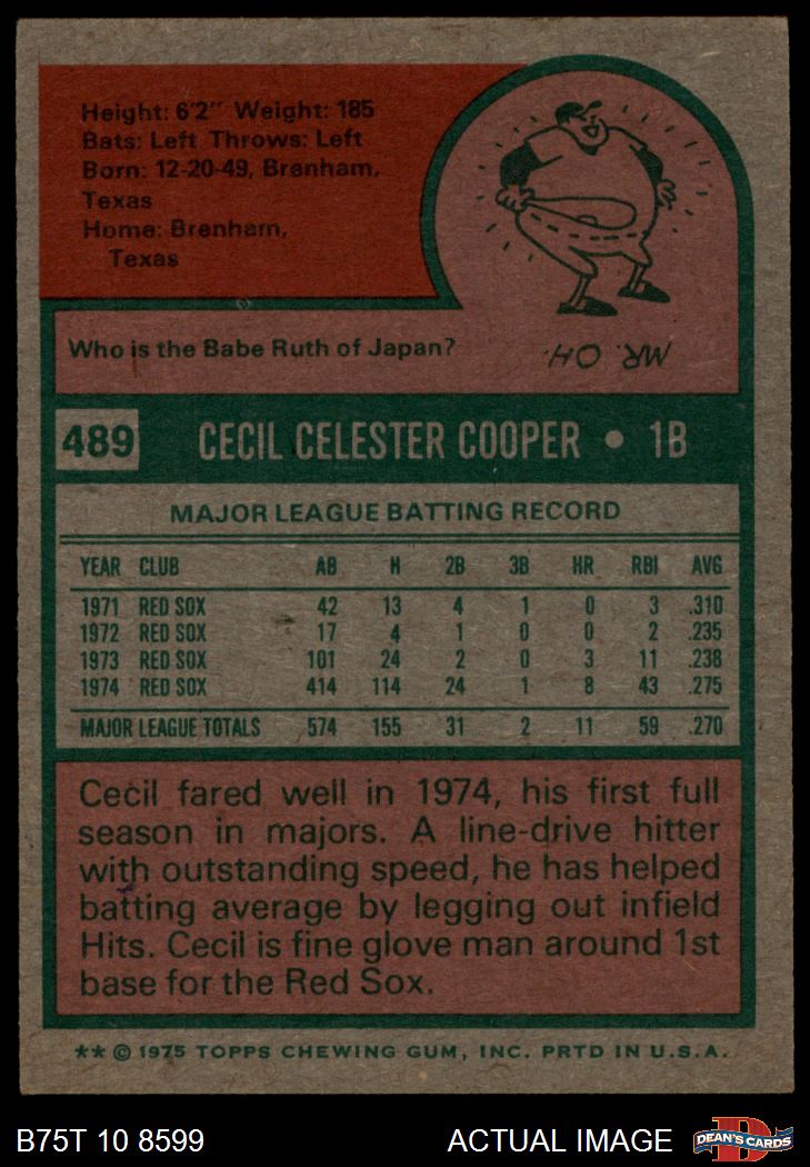 1975 Topps #489 Cecil Cooper
