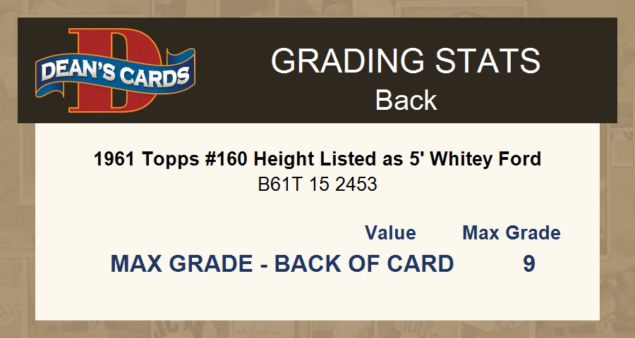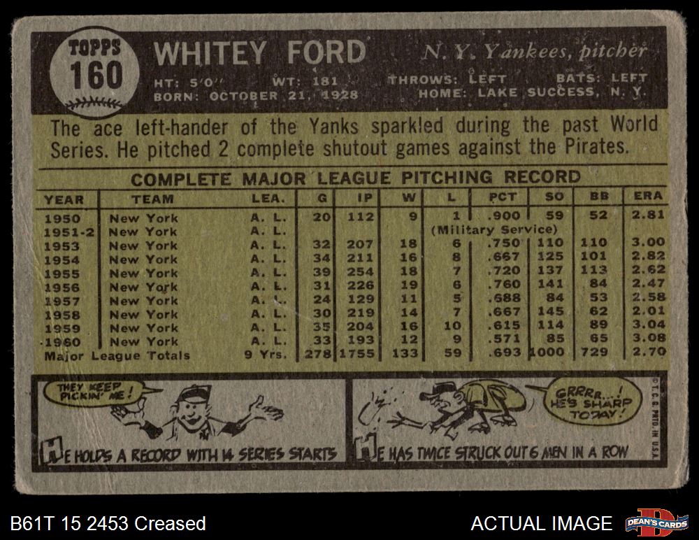 1961 Topps #160 Height Listed as 5' Whitey Ford 1 - POOR