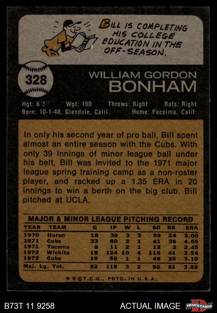 1973 Topps #328 Bill Bonham Front Thumbnail