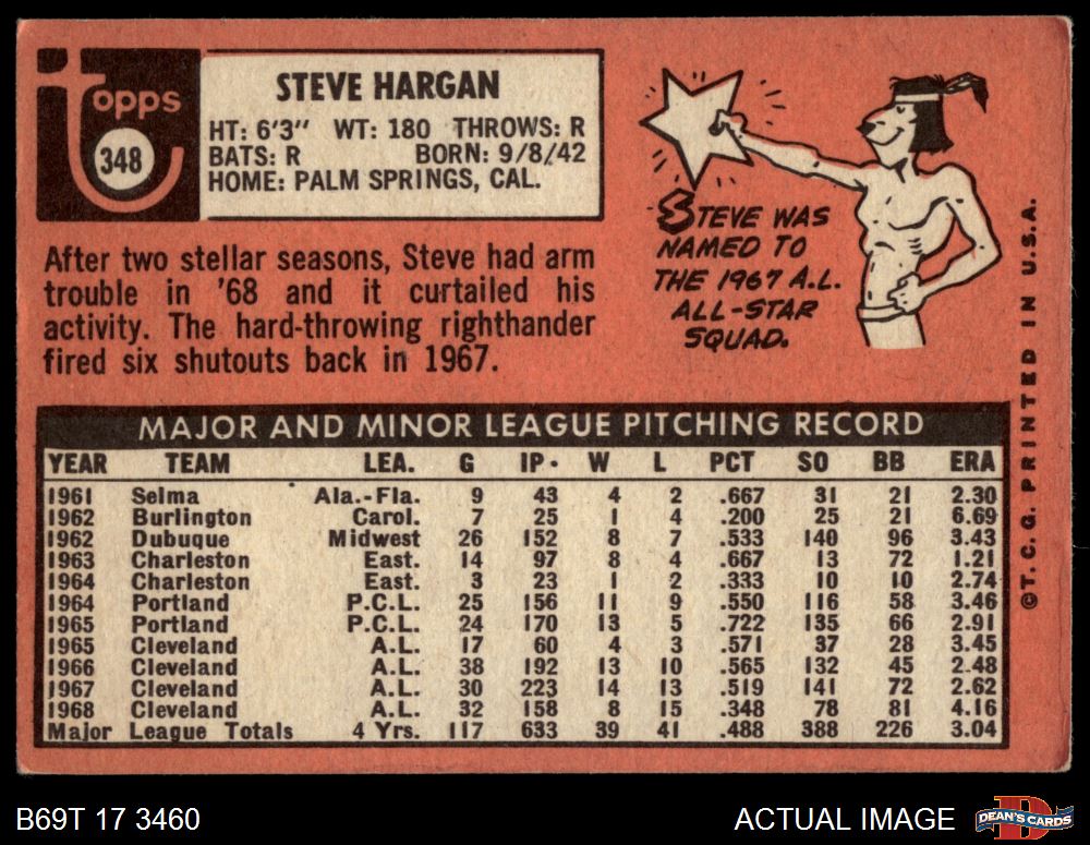 1969 Topps #348 Steve Hargan 3.5 - VG+