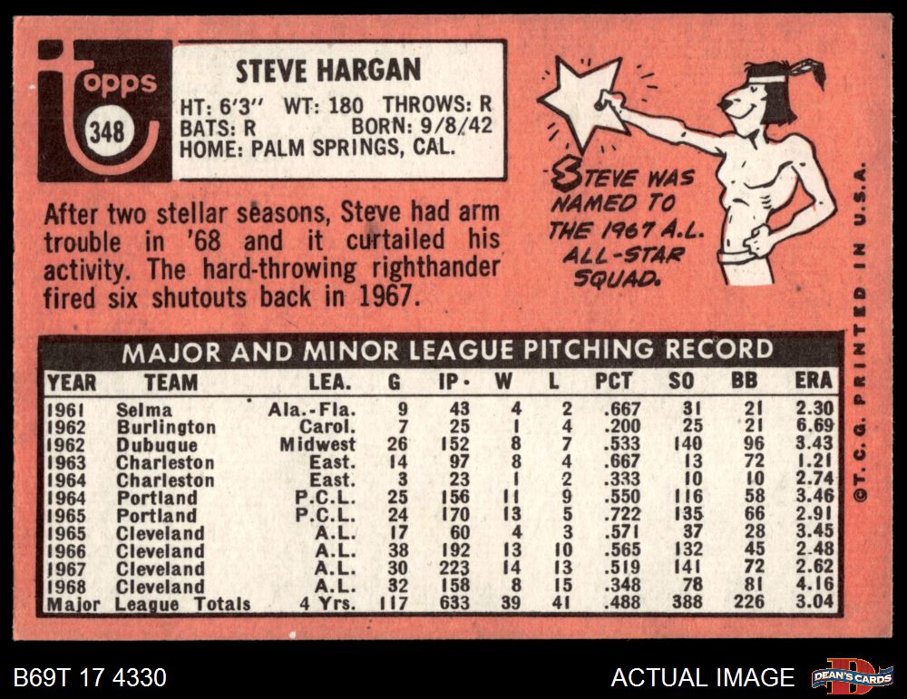 1969 Topps #348 Steve Hargan 6.5 - EX/MT+