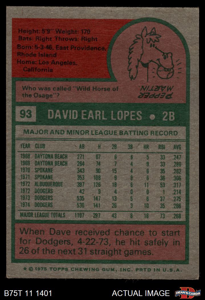 1975 Topps #93 Davey Lopes 2 - GOOD