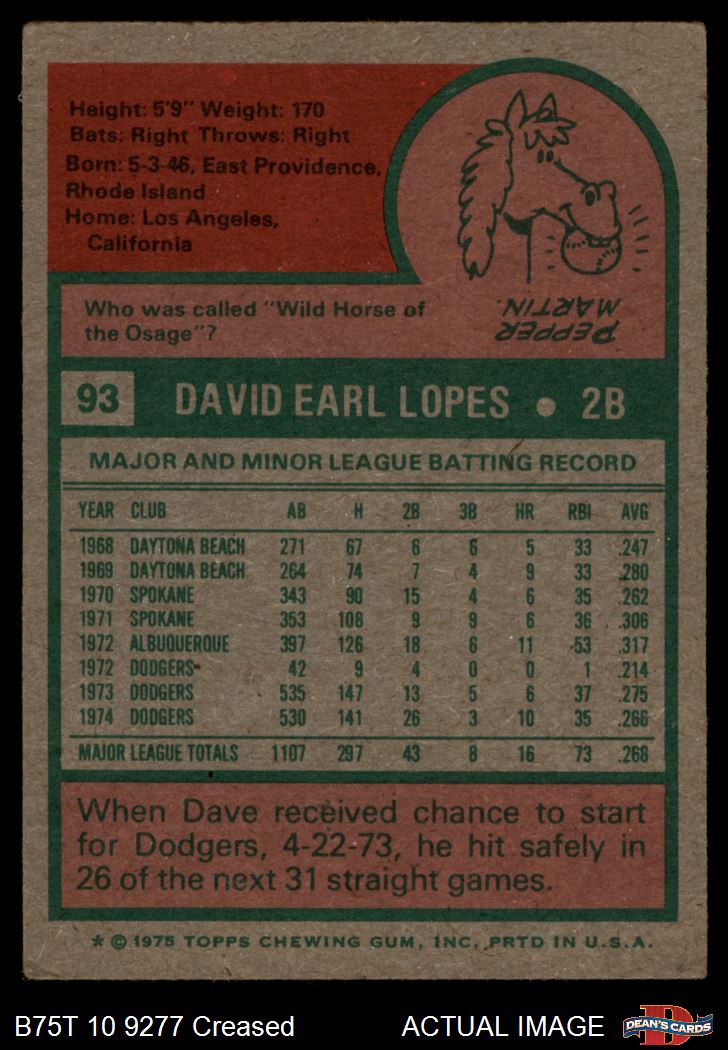 1975 Topps #93 Davey Lopes 3 - VG