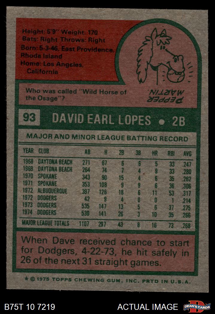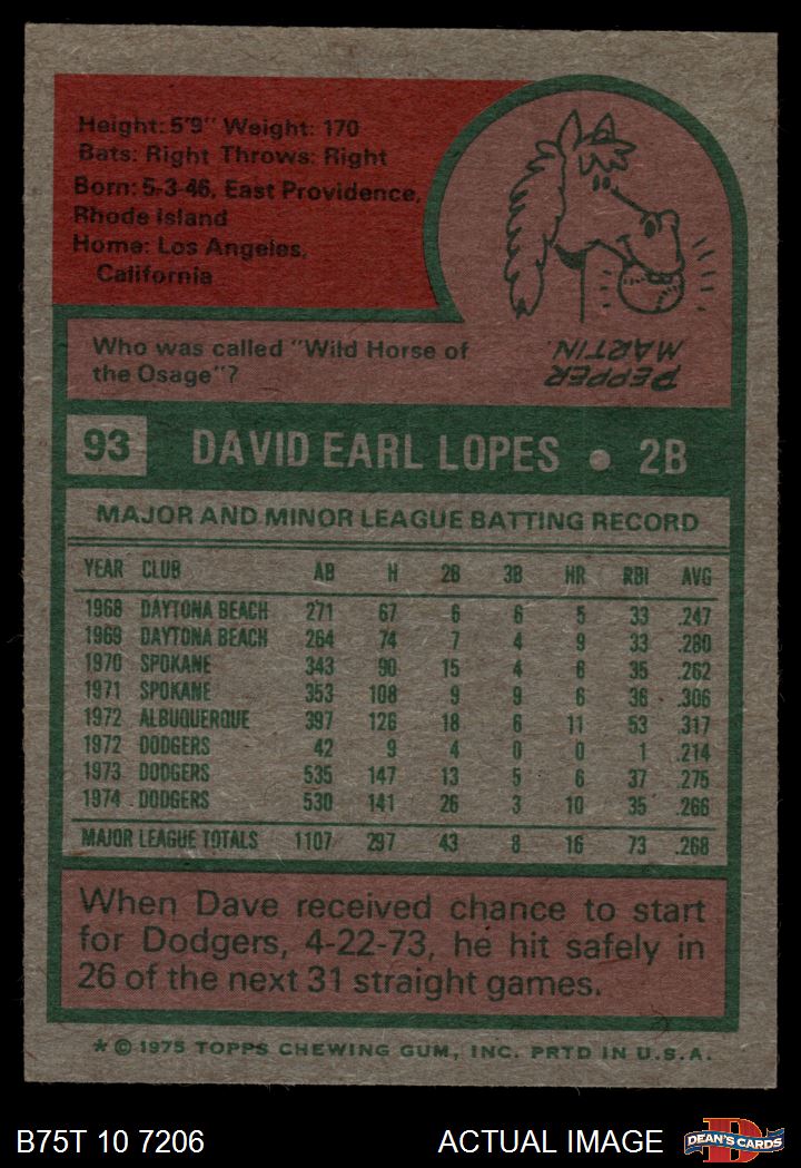 1975 Topps #93 Davey Lopes 6 - EX/MT