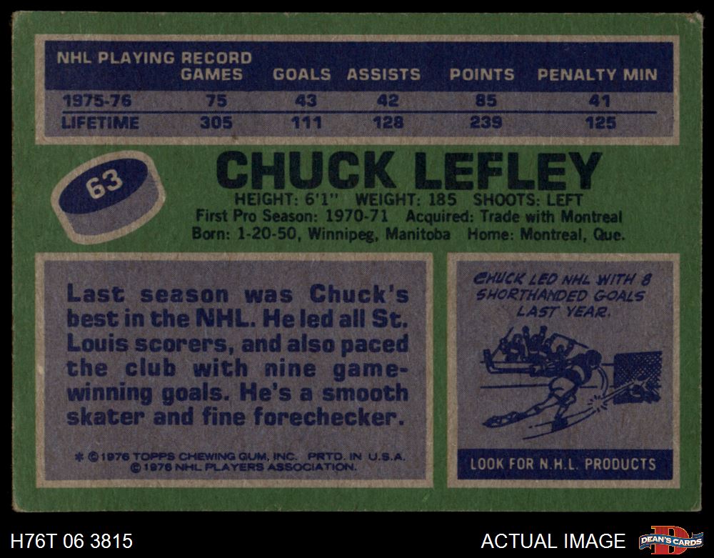 1976 Topps #63 Chuck Lefley Front Thumbnail