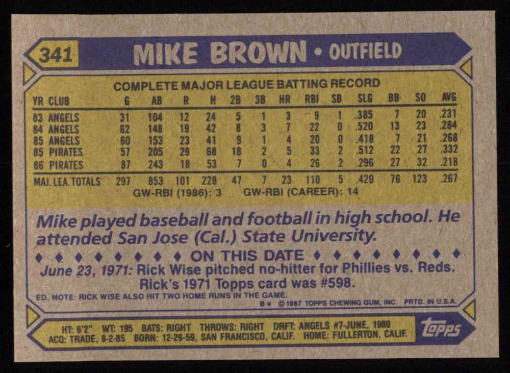 1987 Topps #341 Mike C. Brown 8 - NM/MT