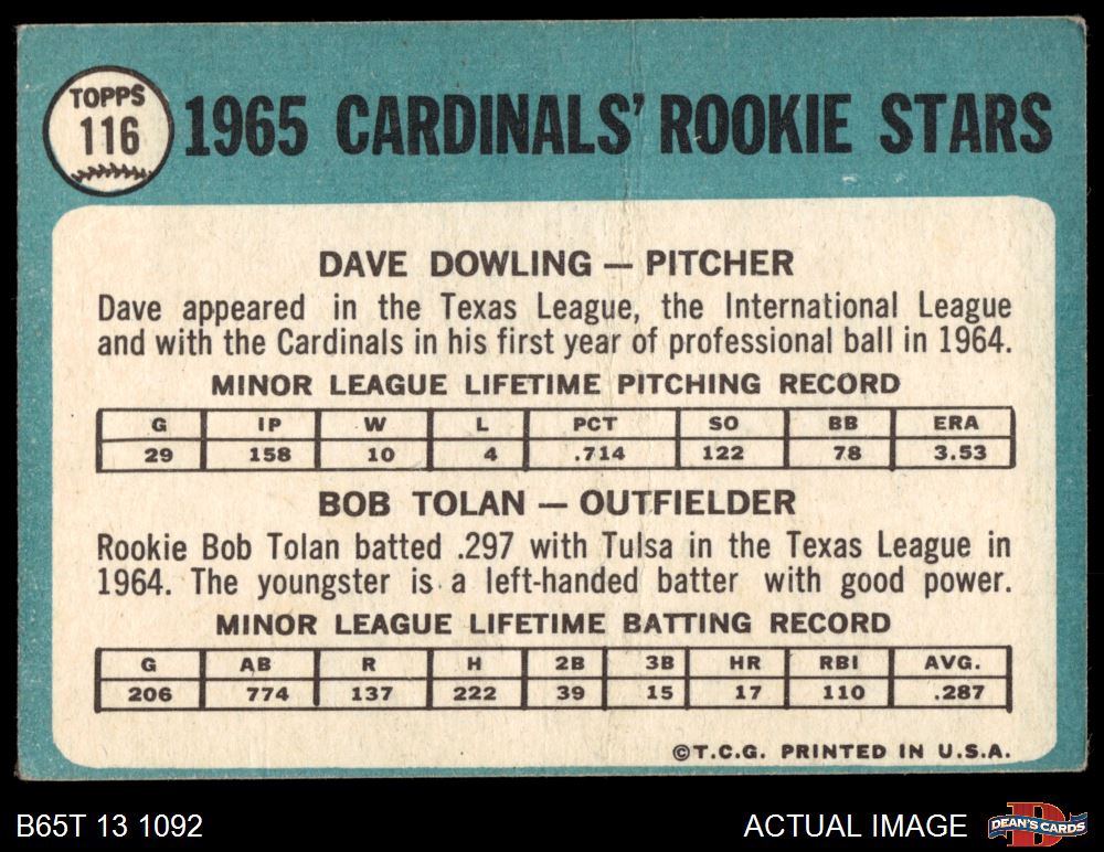 1965 Topps #116 - Bobby Tolan / Dave Dowling Cardinals Rookies 1.5 - FAIR