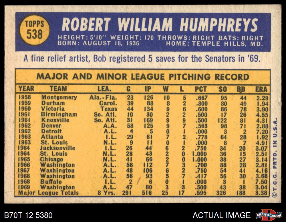 1970 Topps #538 Bob Humphreys 6 - EX/MT