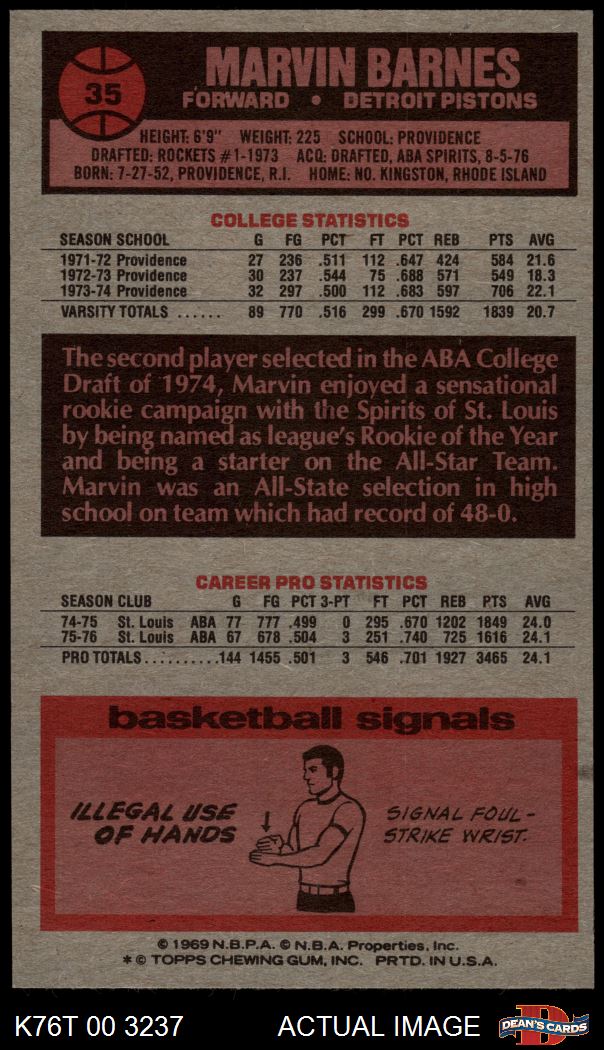 1976 Topps #35 Marvin Barnes 6 - EX/MT