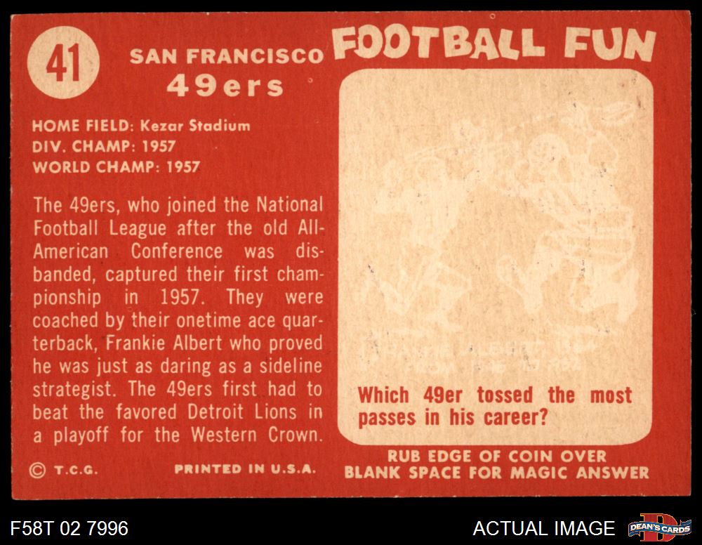 1958 Topps #41 49ers Team
