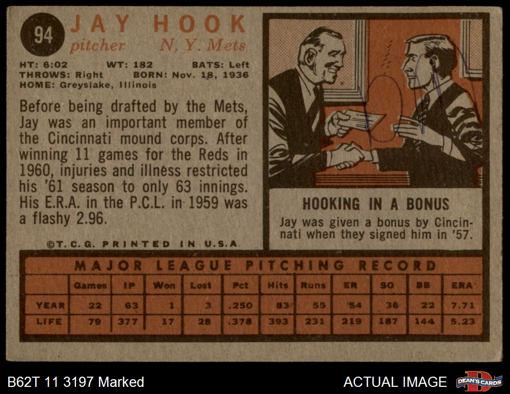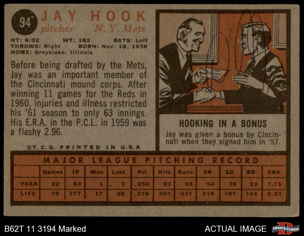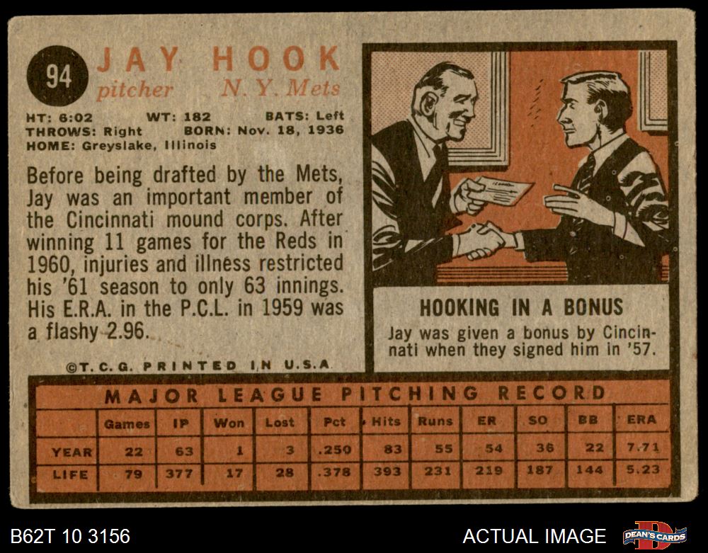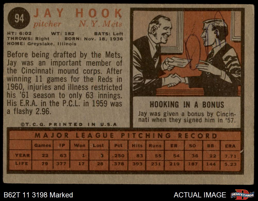 1962 Topps #94 Jay Hook 1.5 - FAIR
