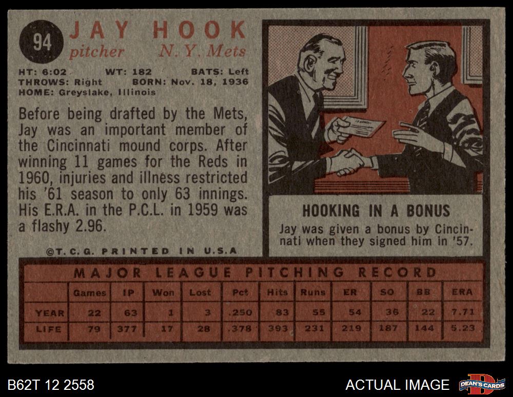 1962 Topps #94 Jay Hook 3.5 - VG+
