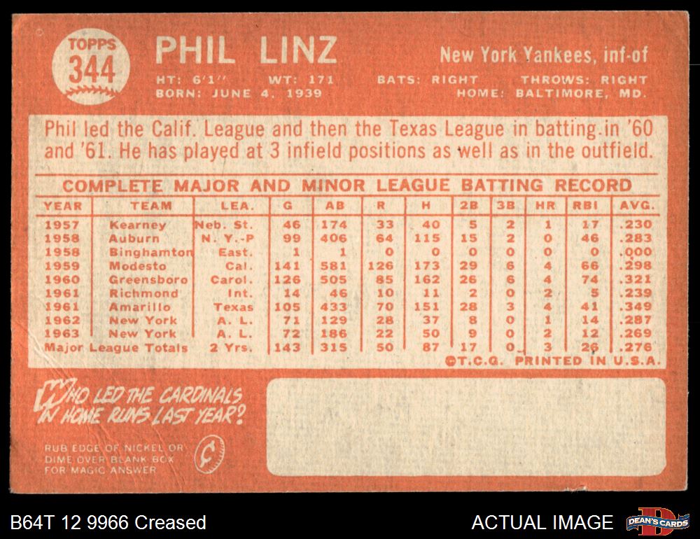 1964 Topps #344 Phil Linz