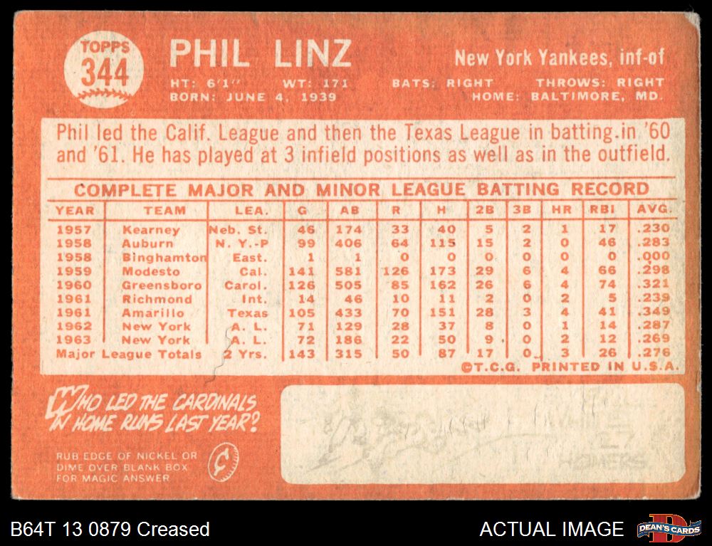 1964 Topps #344 Phil Linz 2.5 - GD+