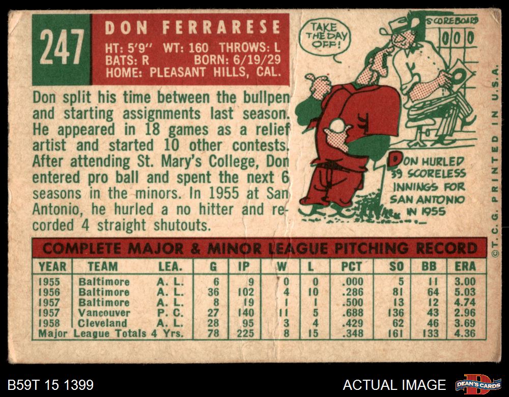 1959 Topps #247 Don Ferrarese 1.5 - FAIR