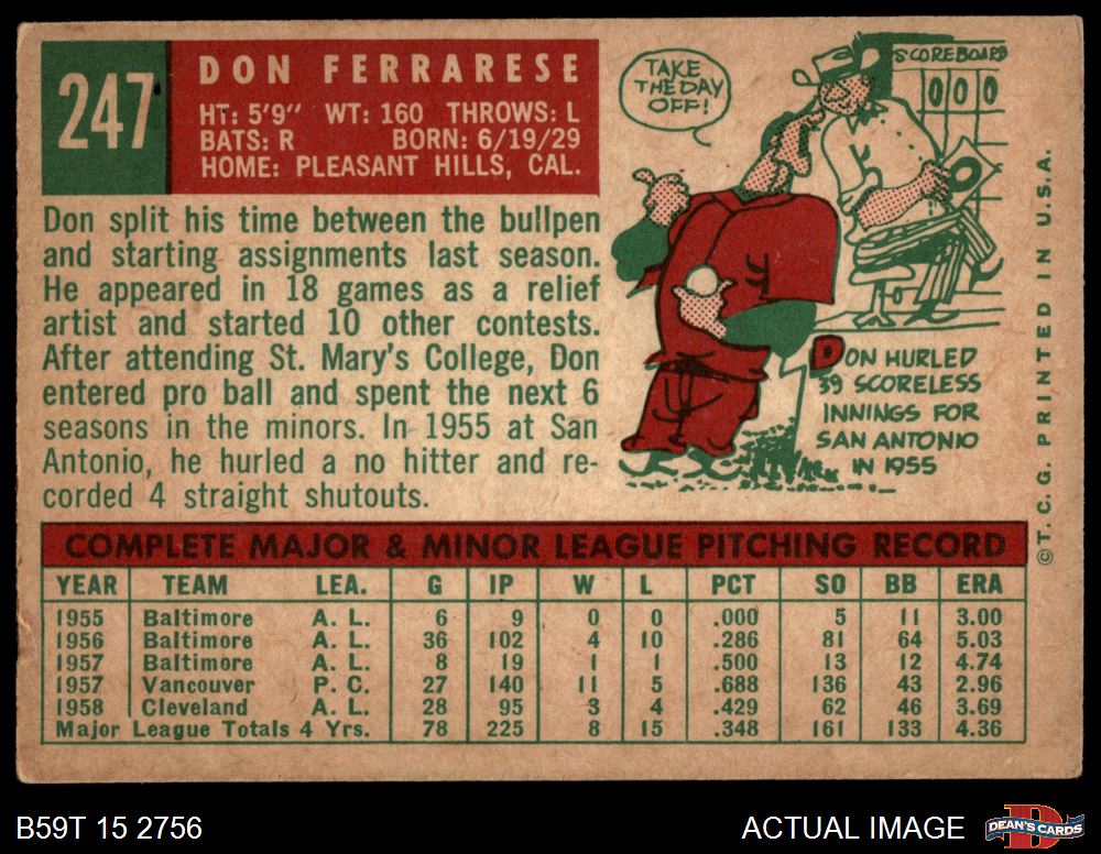 1959 Topps #247 Don Ferrarese 2 - GOOD
