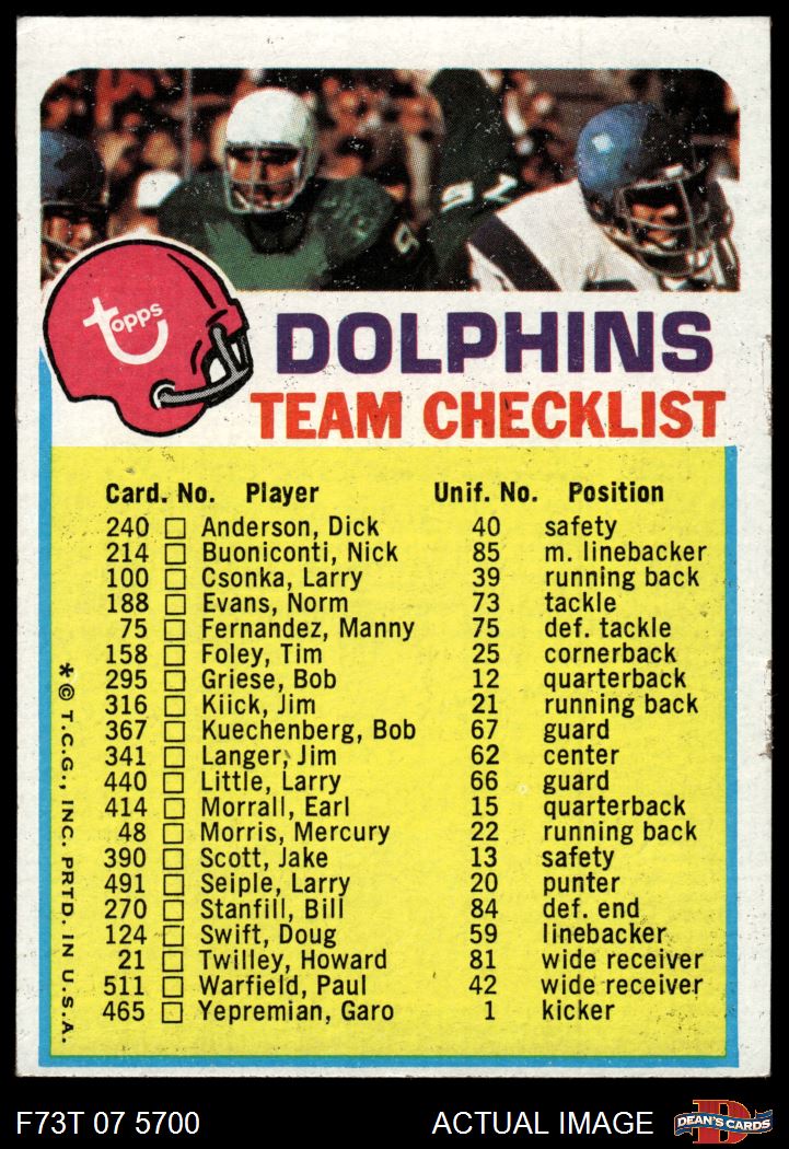 1973 Topps Checklist Dolphins 4 - VG/EX